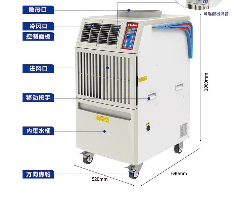 这款机器可以广泛适用于工厂车间、酒店厨房、户外工作、仓库等各种需要降温的场所。特别适合固定工位降温、设备检修降温、仓储搬运工作降温、室外临时工作降温,一些高温环境场