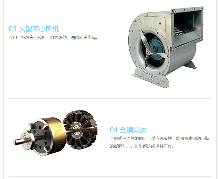 3. 采用大型离心风机,风力强劲、气流均匀、噪音低