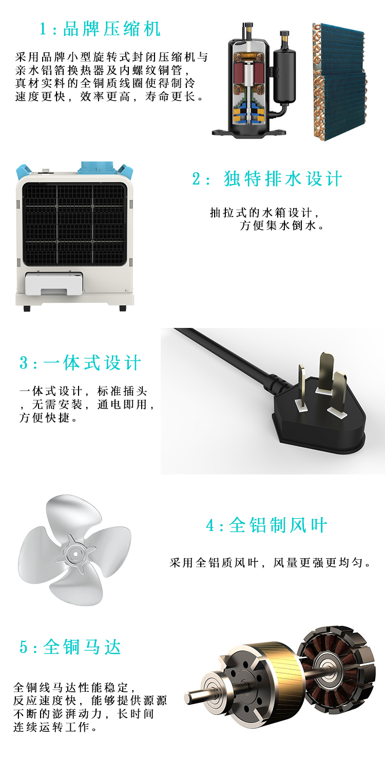 5、机身一体化设计,科学布局,机器自带集水桶、附带除湿效果