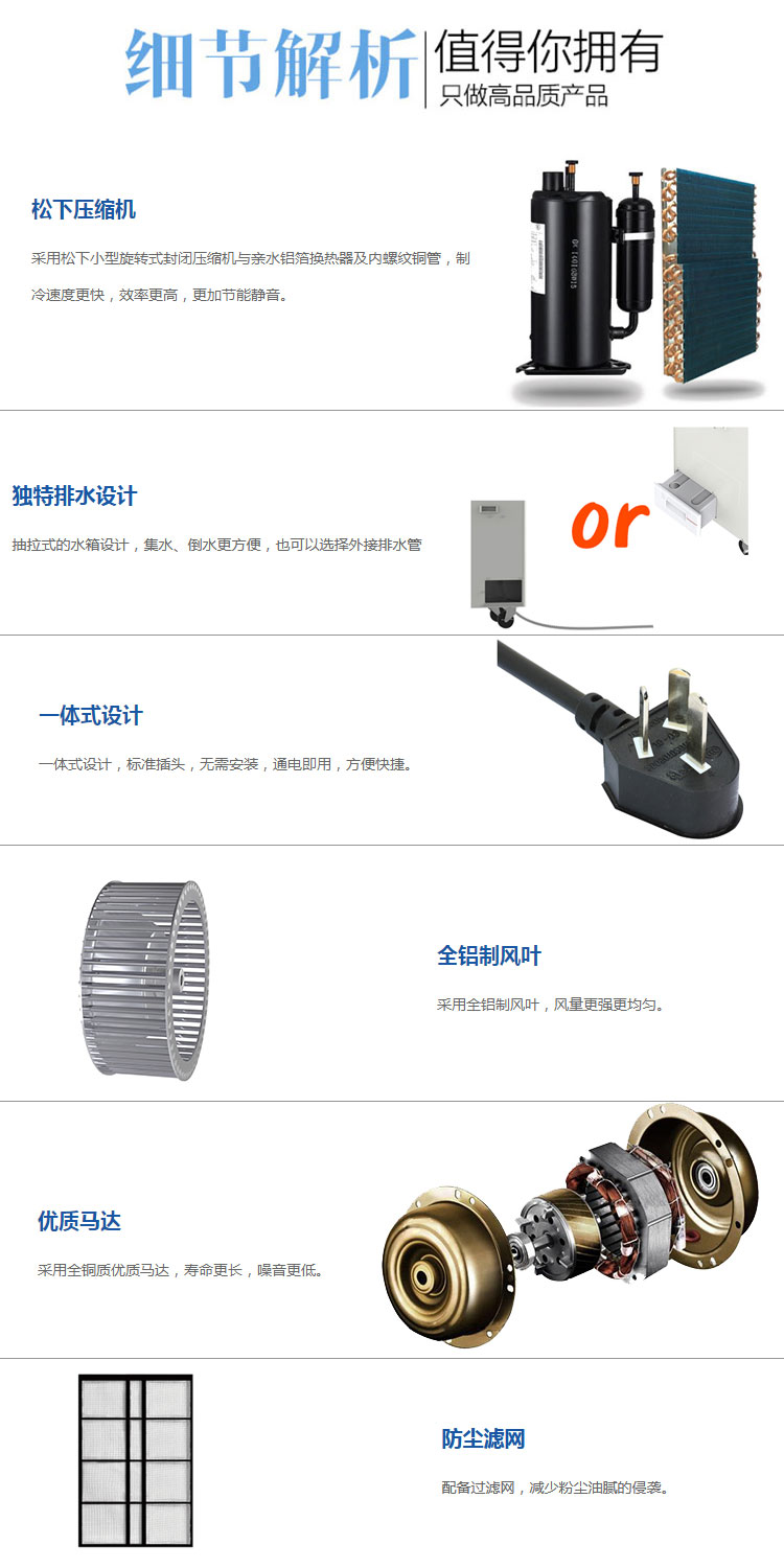 6、机身一体化设计,科学布局,可机内储水桶积水.也可接水管排水,附带除湿效果