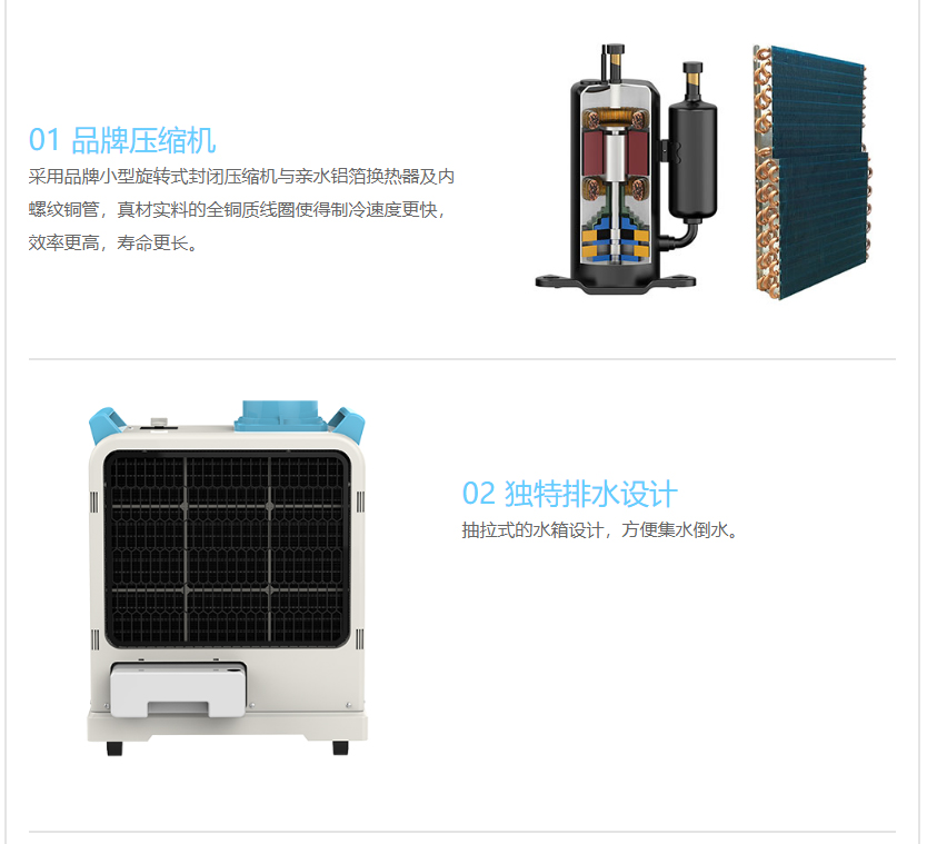 5、机身一体化设计,科学布局,机器自带集水桶、附带除湿效果