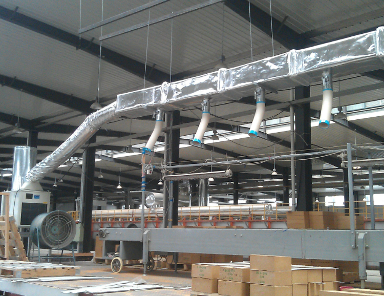 - 管路固定:使用不锈钢扎带或吊链,将主风管和分支软管全部固定在厂房钢梁上,防止风管下垂遮挡天窗光线或触碰货物。