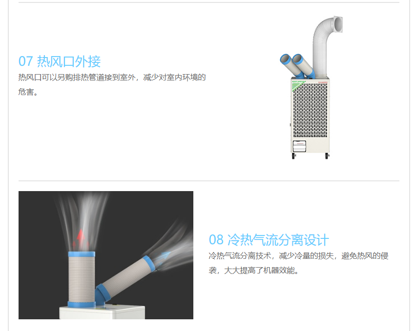6、双管出风,快速降温,适用于2个岗位的降温