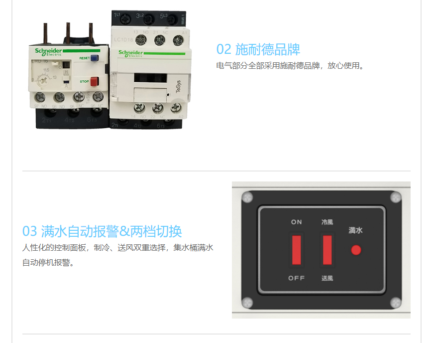 6、人性化的控制面板,制冷/送风双向选择,满水自动报警