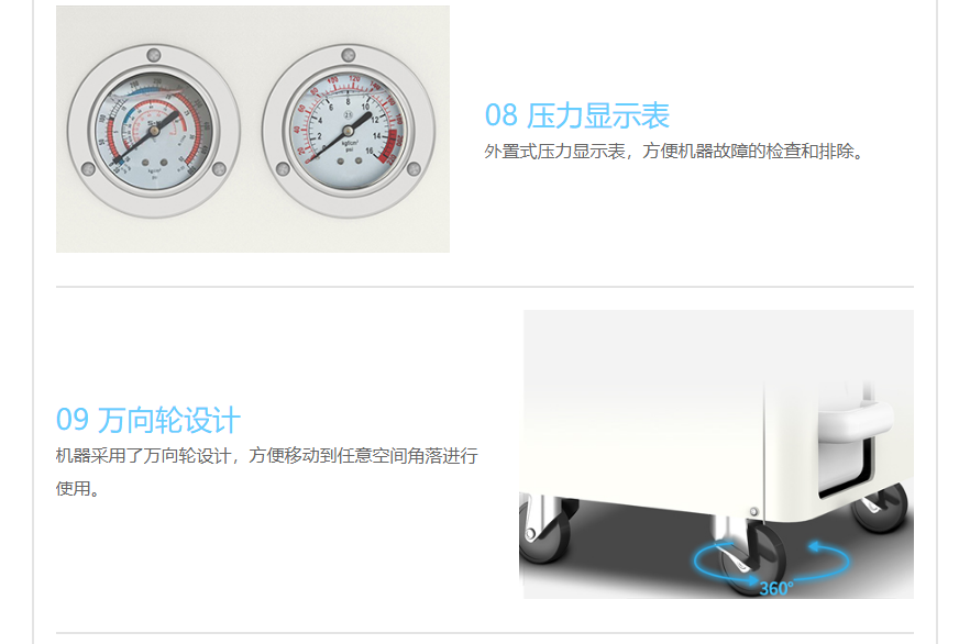 8、外置式压力显示表,方便机器故障的检查和排除