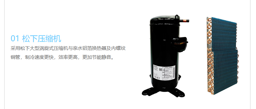 1、采用品牌涡旋式压缩机,性能稳定,故障率低